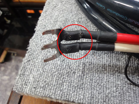 ■オルトフォンのスピーカーケーブル7.8N−SPK9000Si(2.5m)の中古品です。 ■アンプ側Yラグ、スピーカー側にゴールドムンドBANANAを取り付けました。 ■Yラグ側の収縮チューブに小さな剥がれが見られます。 ■全体に汚れや擦れがあります。