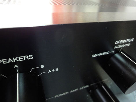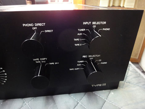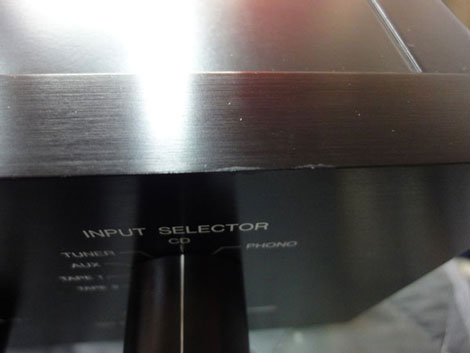 ●フロントパネル正面の左上部(スピーカーセレクターとオペレーションセレクターの間)に当たり傷とフロントパネル右上部角に擦り傷がありましたので、簡易的にラッカー塗料で補修いたしました。