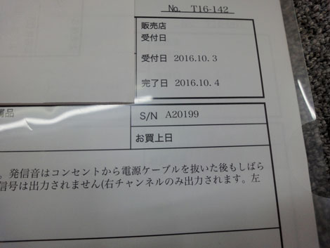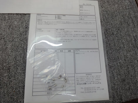 ●付属品は、電源ケーブル・取扱説明書・メンテナンス明細のコピーです。